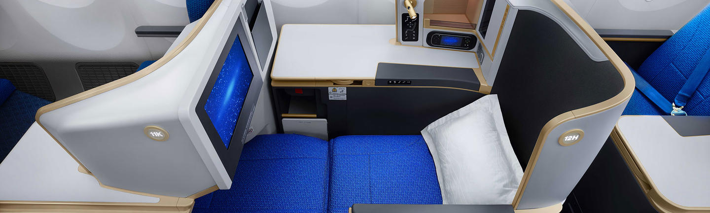Business Class passengers can stretch out and relax in a 62cm wide fully flat bed. The Business Class cabin also has a 1-2-1 configuration, allowing every seat direct aisle access. Seats sitting adjacent also feature privacy dividers while all seats feature a literature pocket, reading light, USB port, magazine rack, in-seat power supply and 15-inch flat-screen LCD TVs.
