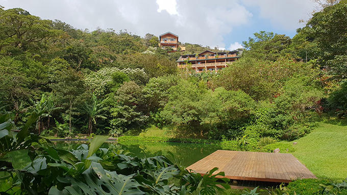 While this hotel is out of town, it undoubtedly has the best views of the volcano. Unwind in the infinity pool and gaze across at the peak, as the clouds shift and fade around the crater. Our room, a Junior Suite, boasted a hanging egg chair on the balcony – equally great for admiring that view. Our favourite thing about Arenal Lodge though is its hummingbird garden, towards the back of the property. Take a seat here, and watch as dozens of these tiny birds dart around a vast greenhouse, their wings beating at audible super-speed.