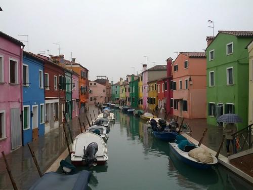 Burano was blissfully quiet; the only sounds we could hear were the gentle lapping of the tide and the murmurs of a handful of tourists. Apparently if you want to paint your house in Burano you require permission from the government – and then you can choose from a selection of approved colours. We wandered down the canals, trying to keep our feet dry against the rising seawater and traded cameras with other tourists, snapping their pictures in front of pink and blue houses.
